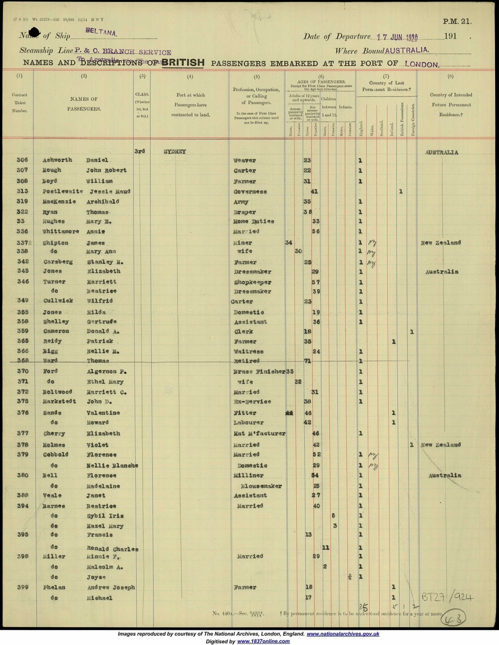 It is likely that Algenon Percy Ford became unemployed just after the end of WW1 and may have seen the ‘writing on the wall’ predicting the recession to come. In any case, he and his wife made the very brave decision to risk all and head for Australia to start a new life.
