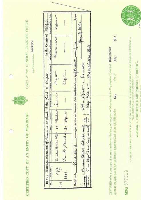 Marriage 1883, April 7 in Clifton, Bedfordshire, UK