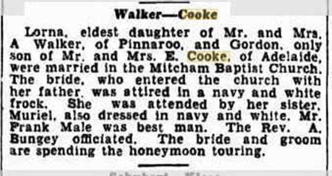 Marriage 1937, October 7 in Mitcham Baptist Church, SA