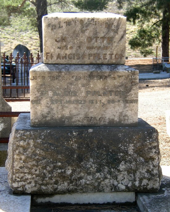 FRANCIS APPLETON Birth 1836 at Farnsworth, near Prescot in Lancashire, England Baptised March 4, 1836 in Parochial Chapel of Prescot, Lancashire, England Father Richard Appleton Mother Margaret Fisher Occupations Manager, Shopkeeper, Postmaster Death September 14, 1923 at his residence, O'Halloran Hill, South Australia Age at Death 89 Years Burial 1923 at Old Happy Valley Cemetery, later transferred to new cemetery, Happy Valley, South Australia, Plot 308, Memorial No. 120374089 |
