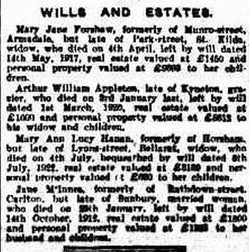 1924 - Wills & Estate, Arthur William Appleton, Victoria