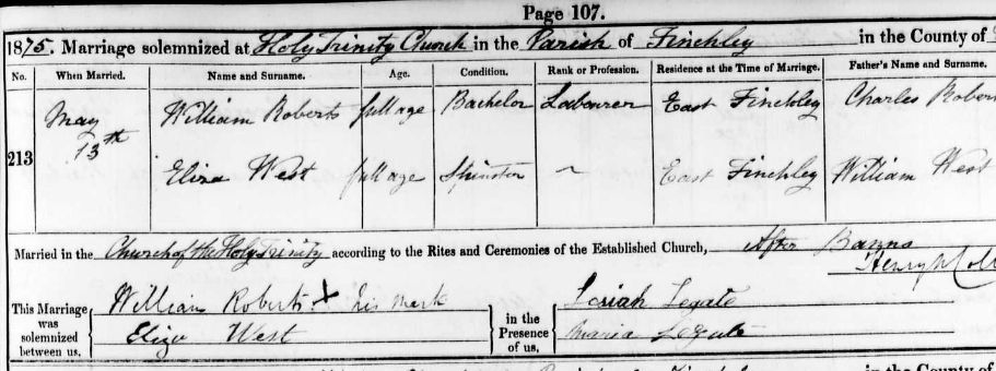 1875 - Marriage Certificate, Eliza West and William Roberts