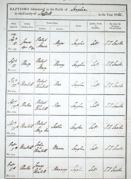 Baptised 1834. October 5 at Langham, Suffolk, UK