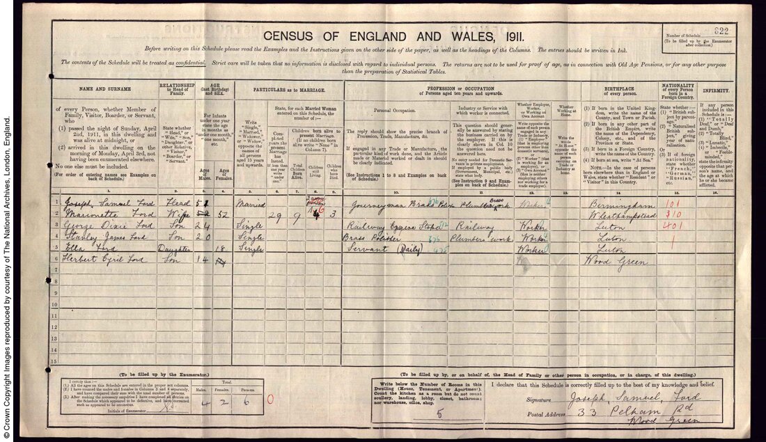 Ella Ford was 18 years old, working as a daily servant and living at home with her family at 33 Pelham Road, Wood Green, Middlesex