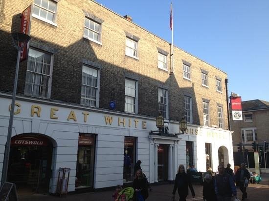 The Great White Horse Hotel is a historic inn in the town centre of Ipswich, Suffolk, England. A hotel has existed on the site since 1518. Previously the site – located on the corner of Tavern Street and Northgate Street – had been used as a tavern in medieval times.