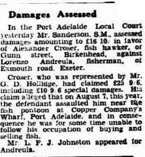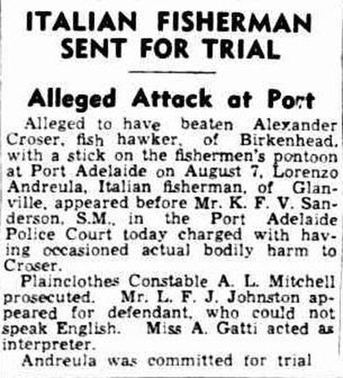 1936 - Attack by Italian FishermanNews (Adelaide, SA : 1923 - 1954), Tuesday 18 August 1936Advertiser (Adelaide, SA : 1931 - 1954), Friday 4 December 1936,
