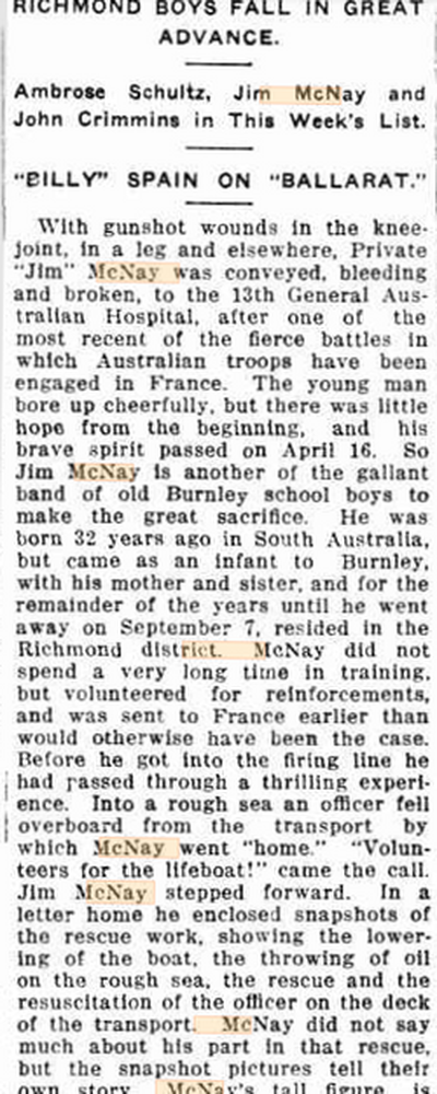 More tragedy for the McNay family with the death of their son James Albert McNay in World War I.