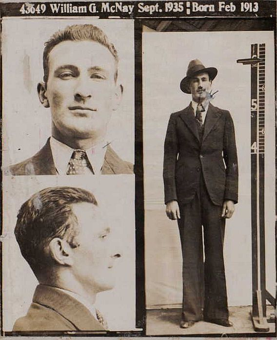 A black mask, a .45 revolver, and other articles were yesterday found in the possession of William George McNay, 21, cook, of Cardigan Street, Carlton, according to the police prosecutor at the City Court today.“There have been a lot of hold-ups lately," the prosecutor said. "Certain descriptions have been given, and we want the people who have been robbed lo look at this man." He said that two constables found the articles in McNay's room, when they took him there, after they had seen him attempting to sell a wireless set in a shop in Queen Street.McNay was remanded to January 23. on a charge of haying had possession of an unregistered pistol. He was granted bail in £200, with a similar surety.Herald (Melbourne, Vic. : 1861 - 1954), Friday 18 January 1935, page 8