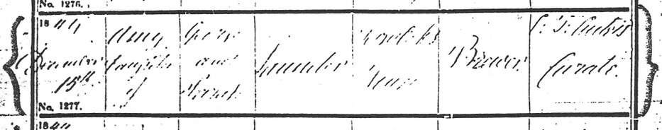 George and Sarah settled down in Sevenoaks where George worked in the furniture trade. Then on August 26 of 1834 their first child was born, christened Eleanor Ann Launder on September 24 of that year. It does not appear that Eleanor’s birth was registered – at least I have never been able to locate the record, but she was baptised. Was their first child premature or had Sarah been pregnant at their marriage in January of 1834?