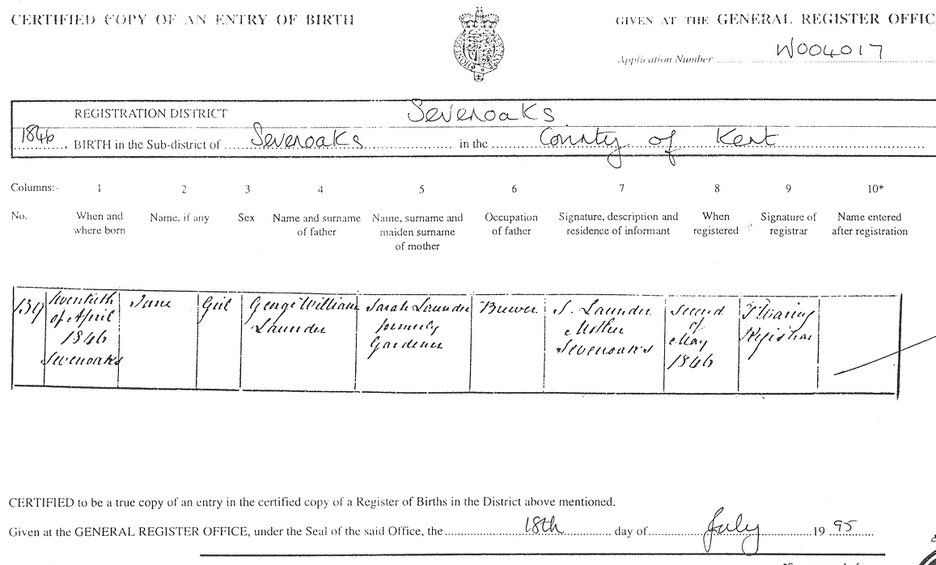 Like clock-work – every two years – another baby arrives. This time, another daughter, Jane Launder, George and Sarah’s seventh child, born in Sevenoaks.