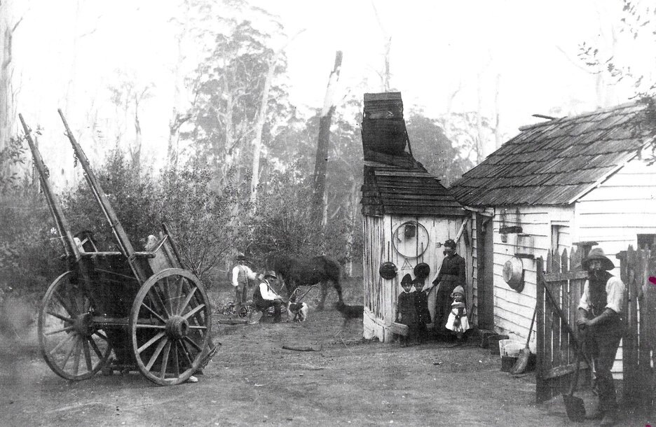 The picture below shows a typical slab and shingle hut in which the earliest pioneers of Hawthorn set up house. It is not supposed that George and Sarah were reduced to this level of hard living by the time they arrived in Hawthorn in 1851. But, nevertheless, their early days, months and indeed years, would have been tough.