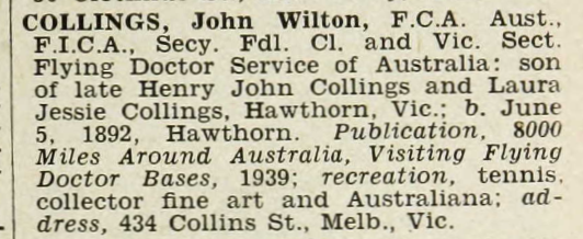 1921 - 1950 - Entry in Who's Who in Australia - John Wilton Collings