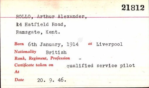 1946 - Qualified Service Pilot Licence # 218812