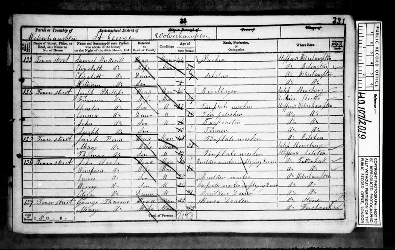 Now living at Tower Street, Wolverhampton in Staffordshire, Jacob, aged 35 was working as a Tin Plate Maker. With Jacob was his wife Mary Ann aged 40, his son Thomas, aged 8 years and his daughter, Mary Ann, just 1 year old.