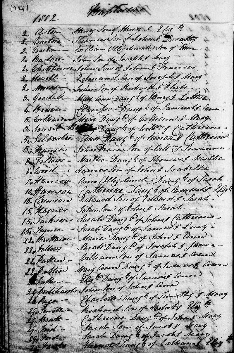 1802 - Baptism - Sarah and Jacob Ford