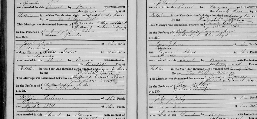 1841 CensusFirst name(s) JacobLast name FordName note -Marriage year 1823Marriage date 20 Oct 1823Marriage place WolverhamptonSpouse's first name(s) Mary AnnSpouse's last name LesterCounty StaffordshireCountry EnglandRecord set England Marriages 1538-1973Category Birth, Marriage, Death & Parish RecordsSubcategory Parish MarriagesCollections from England, Great Britainwww.findmypast.co.uk1823 - Marriage Register - Jacob Ford and Mary Ann Lester