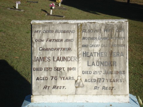 1885 – Birth, James LaunderDeath 1961, September 13 in Brisbane, QueenslandAge at Death 76 yearsBurial Beaudesert, QueenslandChildren 1 Merle Jeanette Launder2 James Malcolm Launder