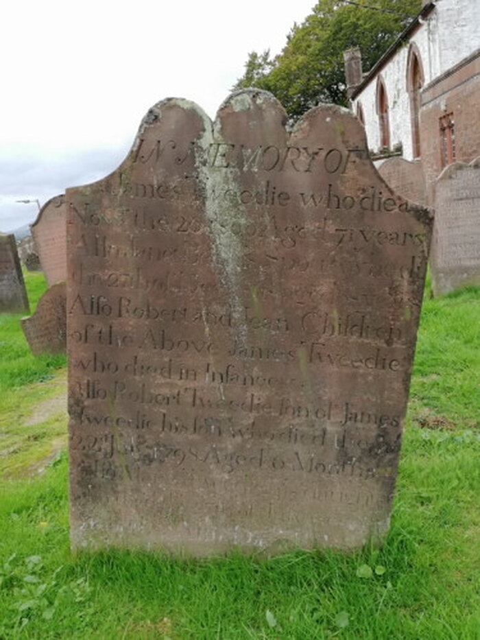 Birth 1773 Blackshaw, Caelaverock, DumfriesshireBaptism 1773, Blackshaw, Caelaverock, DumfriesshireFather James TweedieMother Janet Elizabeth BellMarriage 1795 at Mouswald, DumfriesshireSpouse Elizabeth GibsonDeath 1858, January 6 at Kirkland, Mouswald, DumfriesshireAge at Death 84 years