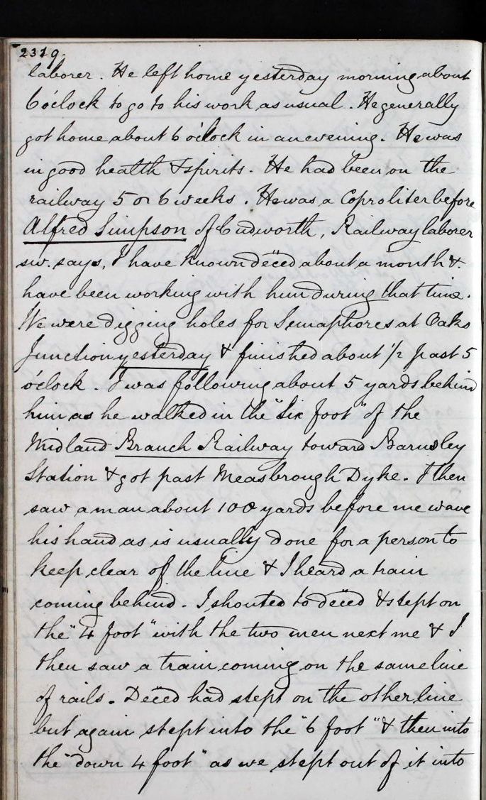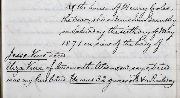 Jesse Vine was working on the railways when he was killed, aged 32 years on May 8, 1871 in Cudworth.