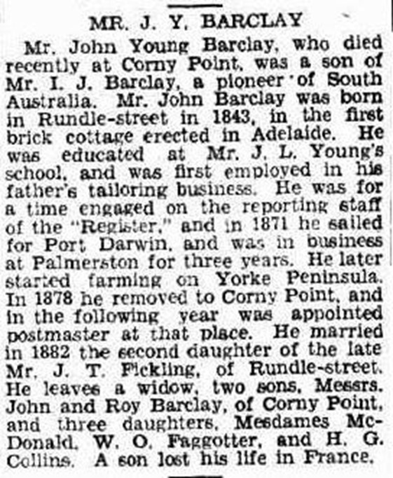 Transcript of Newspaper Notice, "Chronicle (Adelaide)", April 8, 1948
