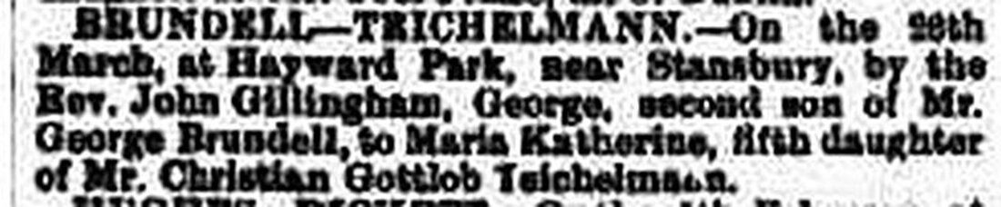 The two families, the Brundell’s and the Teichelmann’s, lived about a mile apart and so it was easy for George Brundell junior to court and marry Catherine Teichelmann in 1885 – these were Linda Rose Brundell’s parents. Including, Linda Rose there were seven children from the marriage.