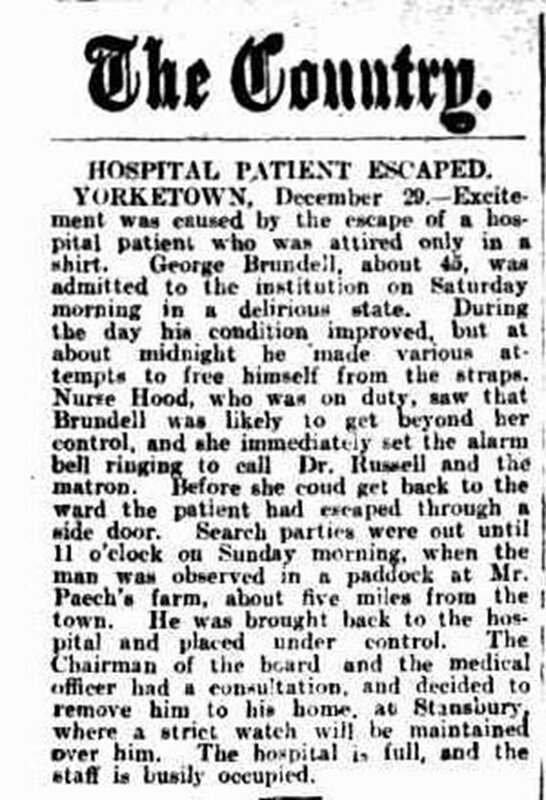 1913 – Linda Rose Brundell - Hospitalized - Father, George Brundell