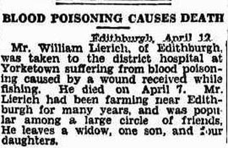 SAUNDERSOn the 12th September, at Edithburgh, Charles Henry, in his 87th year (late of Yorketown and Edithburgh), father of Mrs. M. Lierich, Edithburgh; V. Brown, Blyth; John R. Saunders, Solomontown.1931 - Death Notice, "Advertiser and Register (Adelaide, SA)", 19 September 1931