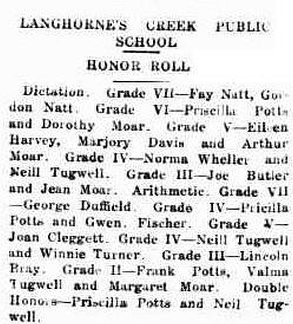 1933 - School Honor Roll - Valma Tugwell & Neill Tugwell