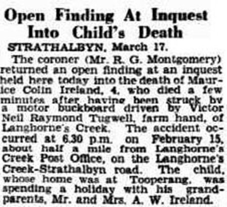 1939 – Child Killed – Truck Driven by Valma Tugwell’s Brother