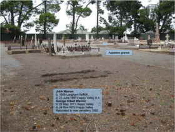 Name: John WarrenDeath Date: 24 Aug 1969Death Place: South AustraliaRegistration Year: 1967-1970Registration Place: South AustraliaPage Number: 6290Volume Number: 74ASource Information: Ancestry.com. Australia, Death Index, 1787-1985John & Linda Warren's Burial Place, Stansbury, SA