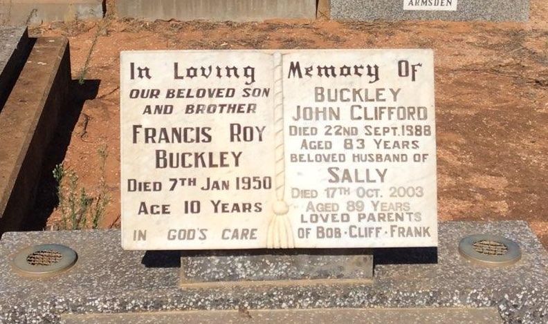 Birth 1939, Oct 30Father John Clifford BuckleyMother Agnes Heather (Sally) EdwardsDeath 1950, January 7 at MilduraAge at Death 10 yearsBuried Nichols Point, Victoria