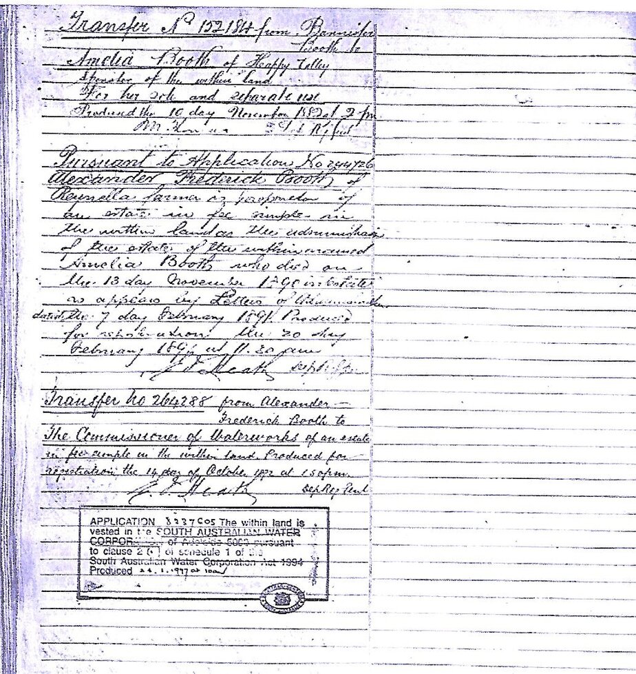 1891, February 7 Transfer under Estate Amelia Booth (deceased) to Alexander Frederick Booth