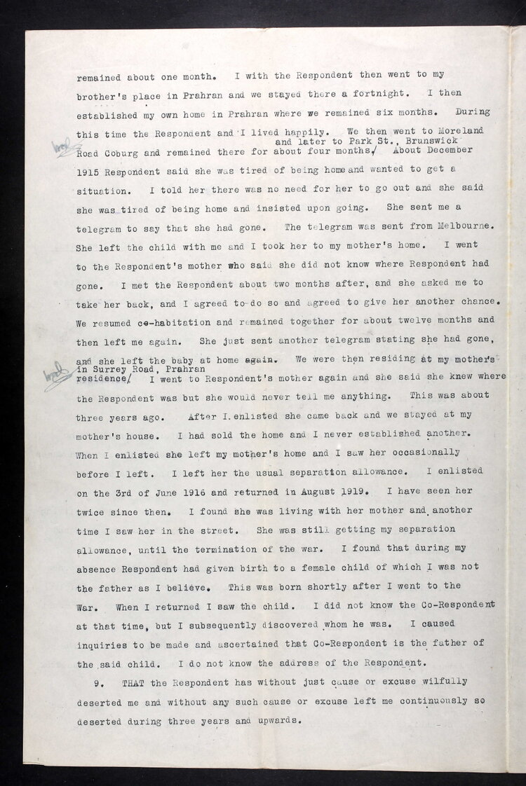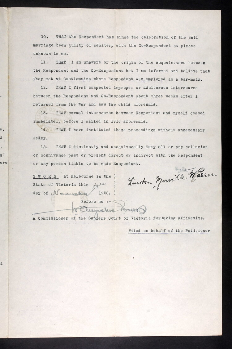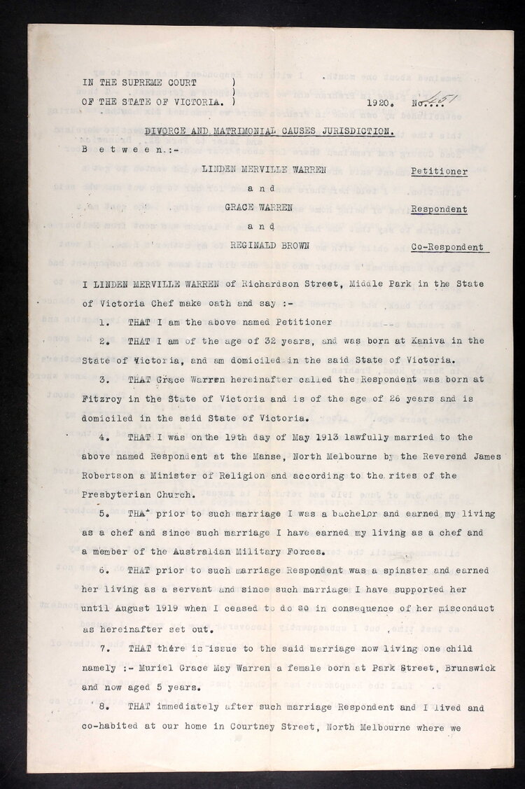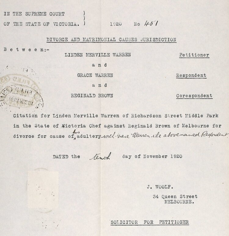 Victoria, Australia, Divorce Records, 1860-1940 – 1920 - Warren v Warren + Brown