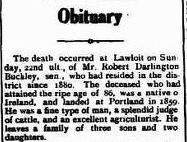 1919 – Obituary for Robert Darlington Buckley Snr.