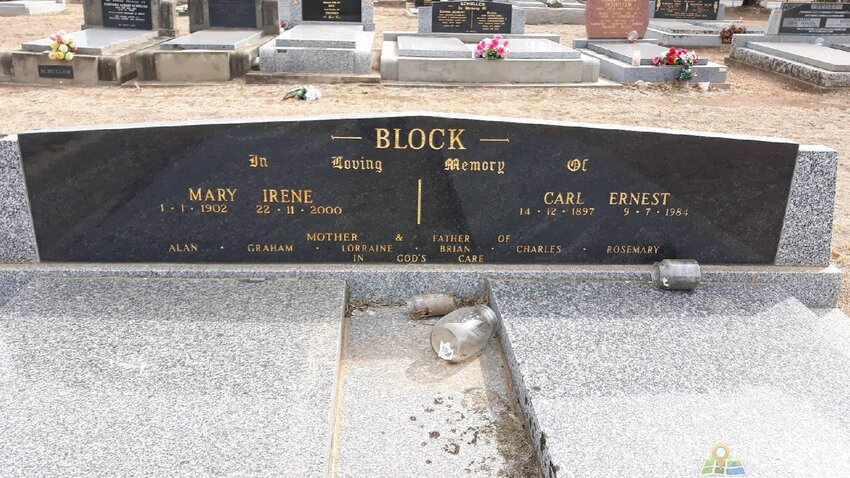 Birth 1902, January 1, Kaniva, VictoriaMarriage 1926, VictoriaSpouse Carl Ernest BlockBorn 1897, December 14 at Goroke, VictoriaFather Charles Diedrich BlockMother Emma Catherine WatsonDied 1984, July 9 at Nhill, Victoria (87 years)Death 2000, November 22, Goroke, VictoriaChildren 1926-1989 Alan Block