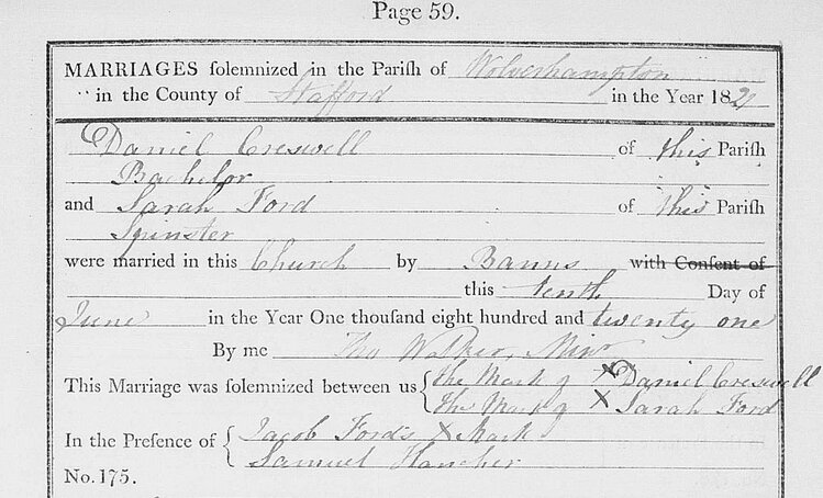1822 - Marriage Certificate for Sarah Ford and Daniel Creswell