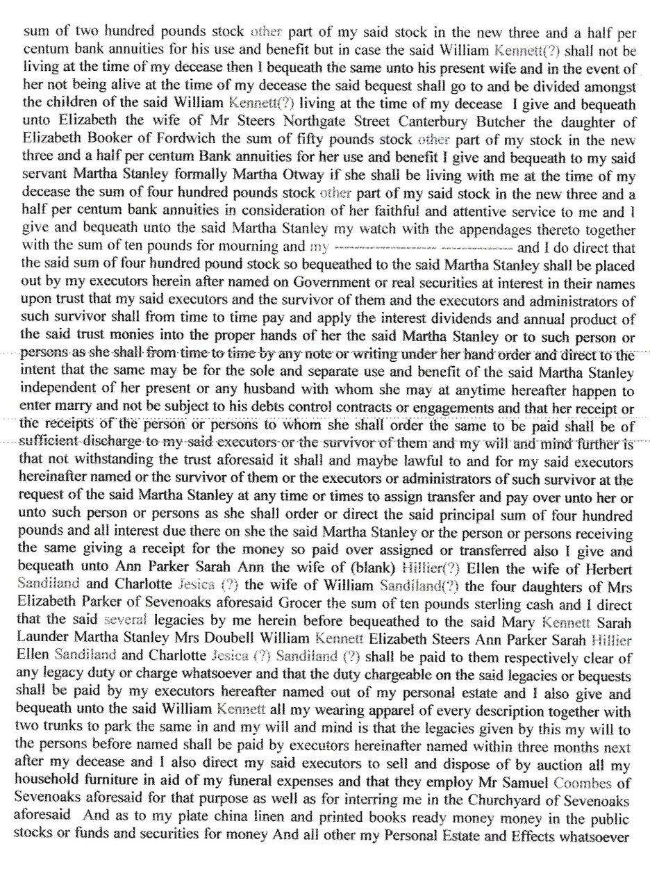 Sarah Launder had already proven herself to be an astute businesswoman in her earlier years, so even though she was ageing, she may have been unhappy with the treatment she had received at the hands of her family and son-in-law, John Collings. Perhaps she had been bullied or rushed into signing the agreements turning over her estate in return for £500 and then for 30/- per week. Or perhaps her youngest daughter, Mary Ann, now aged 23 years old, realised what was happening to her mother and saw the deals for what they were – a means of stealing her mother’s fortune.