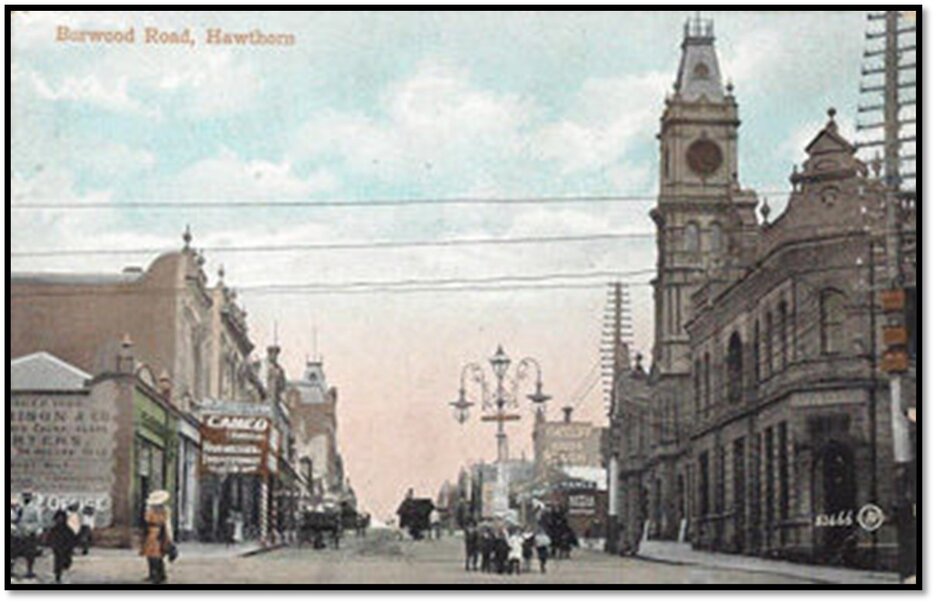 ‘Postcard of Burwood Road looking westward’, c. 1910, City of Boroondara catalogue no. lhph00499.