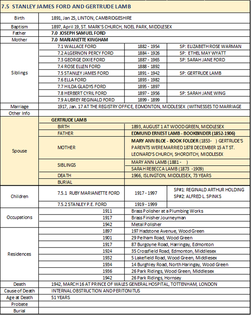 STANLEY JAMES FORD & GERTRUDE LAMB – THEIR LIFE TOGETHER