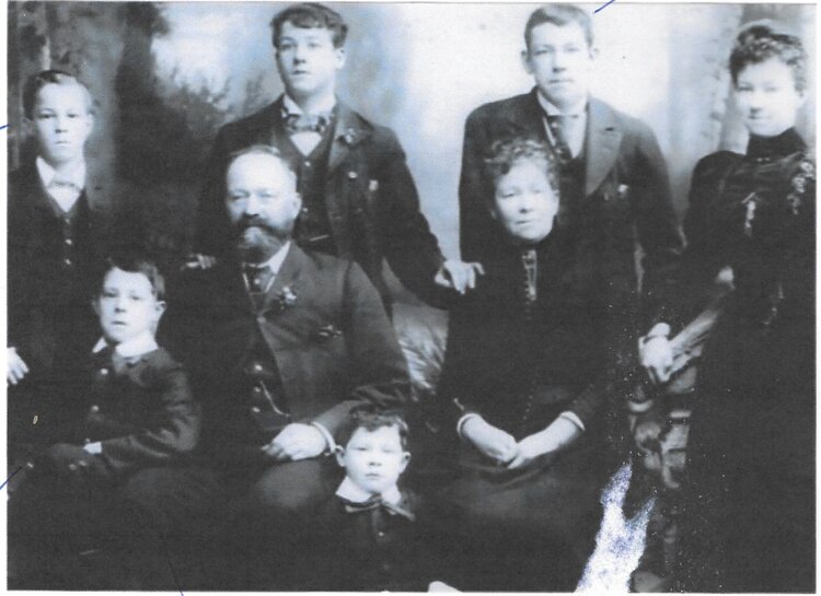 Thomas Howard Launder and Emily nee Wood sit amongst their children in about 1890