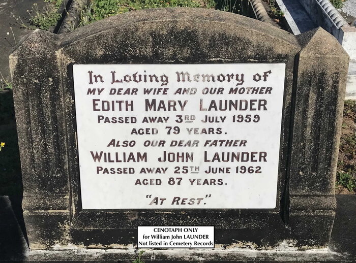 Children Irene May LaunderDeath 1970, December 27 in QueenslandAge at Death 63 yearsBurial Mount Bassett Cemetery, Mackay, Queensland
