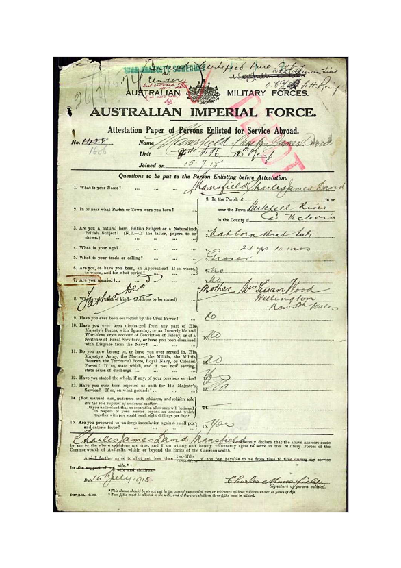Born 1889 in Bairnsdale, VictoriaFather Thomas Mansfield (1851 - 1889)Mother Susan Blyth (1856 - 1917)Death 1939, February 13 in Townsville, QueenslandAge at Death 49 yearsBurial Belgian Gardens, Townsville, QueenslandSiblings Ann Agnes Mansfield (1872 - 1907)